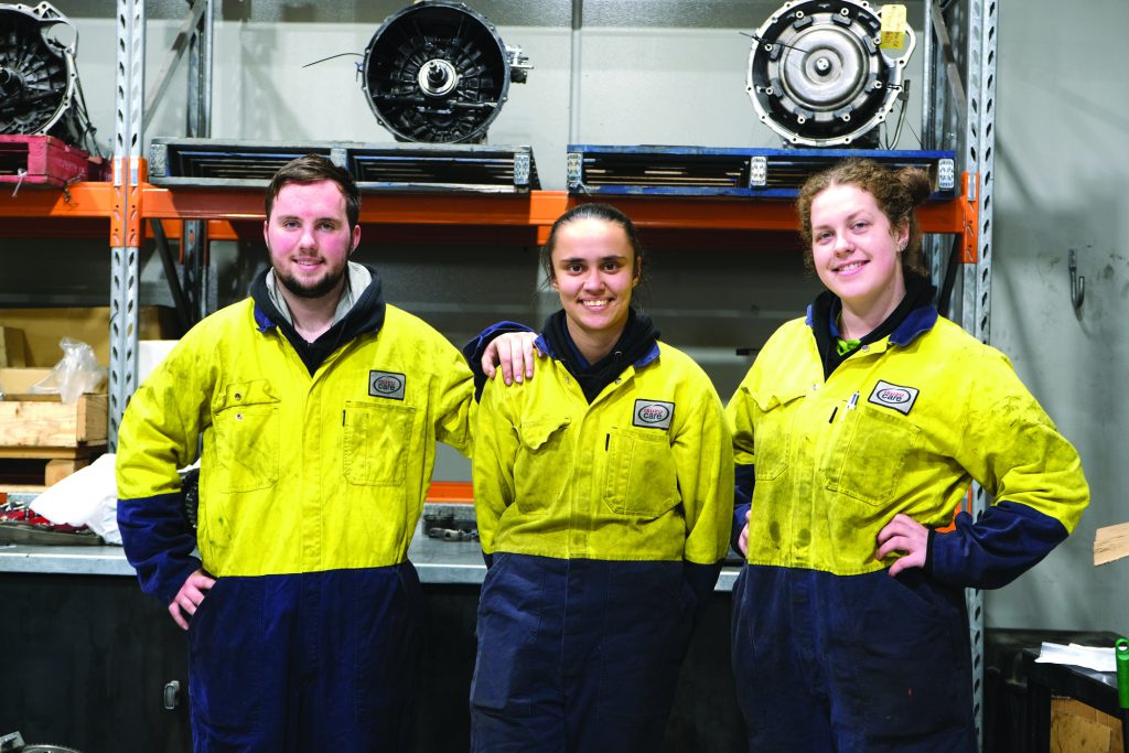 Patterson Cheney Trucks Dandenong apprentices Thomas Moorman, Kristen DaSilva and Madeleine Sutton.