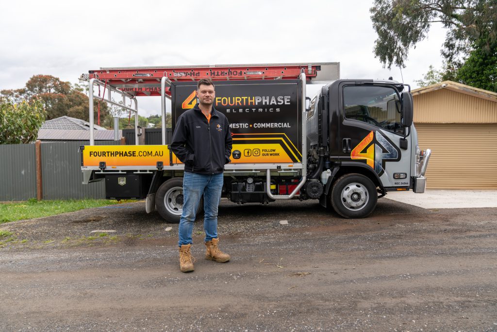 You’ll find many customisations available on a tray model and also many pre-bodied options too— like this Isuzu Tradepack on the job for Fourth Phase Electrics in Victoria which comes stacked with extras like ladder racks, toolboxes and safety steps as standard, helping the business get bang for buck.