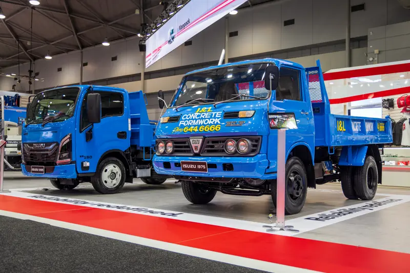 The KS11 Elf 350 Tipper alongside the MY25 NKR at The Brisbane Truck Show