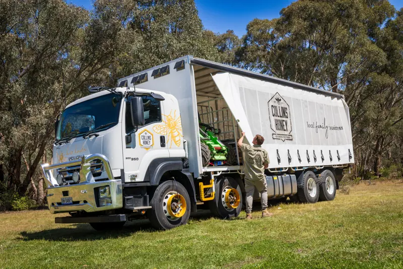 Getting bees from A to Z across Bendigo, into Victoria and as far north as New South Wales requires reliable transport, which comes in the form of an Isuzu FYJ 300-350 Auto 8x4 for Collins Honey.