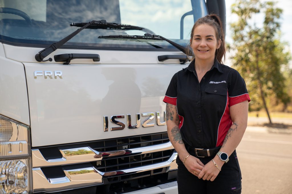 Emma Newell-Courtney is a proud Kamilaroi and Bigambul woman, who first entered the world of trucking by tinkering with engines on her family farm as a young woman. This led to Emma diving headfirst into completing her Certificate III in Heavy Commercial Mechanical Techniques, and a Certificate IV in Mechanical Engineering (Diesel Fitting). Nowadays Emma is a Snap-on Tools franchisee with a hugely successful Snap-on business. She drives throughout her south-east Queensland beat, delivering tools and diagnostics equipment to her customers. With a local job that still revolves around her truck passion, Emma has time for flexibility with her family and young kids, as well as all the perks of being her own boss.