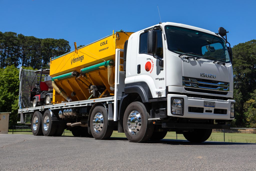 The services the business provides require heavy machinery, including Kubota tractors, fertiliser spreaders, seeders, vacuums, laser graders and forklifts. But the most important tool is the wheels that gets all his machinery to the turf, and Craig knew he needed something impressive. Having already had a smaller truck from another Japanese brand, which Craig found lacking, he needed something with carrying power.