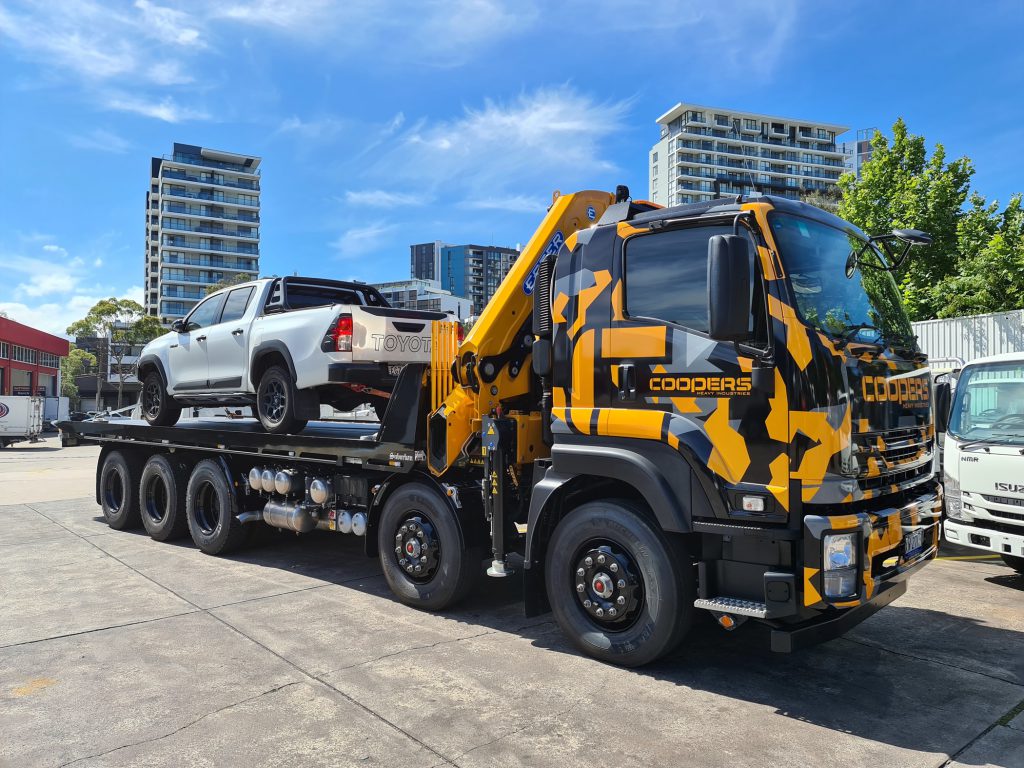If looks could kill, then this FYX 350-350 Auto from Coopers Heavy Industries has us slayed. Sporting the company’s signature black and yellow camo wrap with a matching Effer Crane and custom tray, the FYX brings Coopers’ mobile crane and transport services to clients across New South Wales. Owner Dylan Cooper notes the Suttons dealership made his purchase and outfit experience a breeze and has only positive things to say about his heavy-duty beauty, “This truck feels solid, I love the simplicity and I love how quiet it is. Thanks for such an excellent product, Isuzu!”