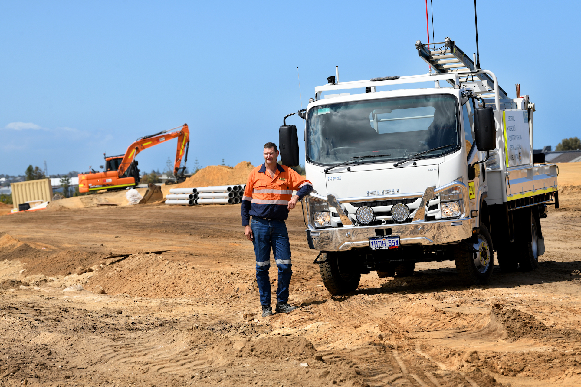 Around taking care of the company books and work schedule, Lincoln spends most days driving and working on site, and had apprehensions about fitting comfortably in the cab of medium-duty truck. Since purchasing Encee’s first Isuzu (a 2004 NPS 300 4x4) from Nestor Jongko at Major Motors, Forrestfield through to their current 2016 and 2020 model NPS 75-155s, it’s been smooth sailing over the sand dunes.