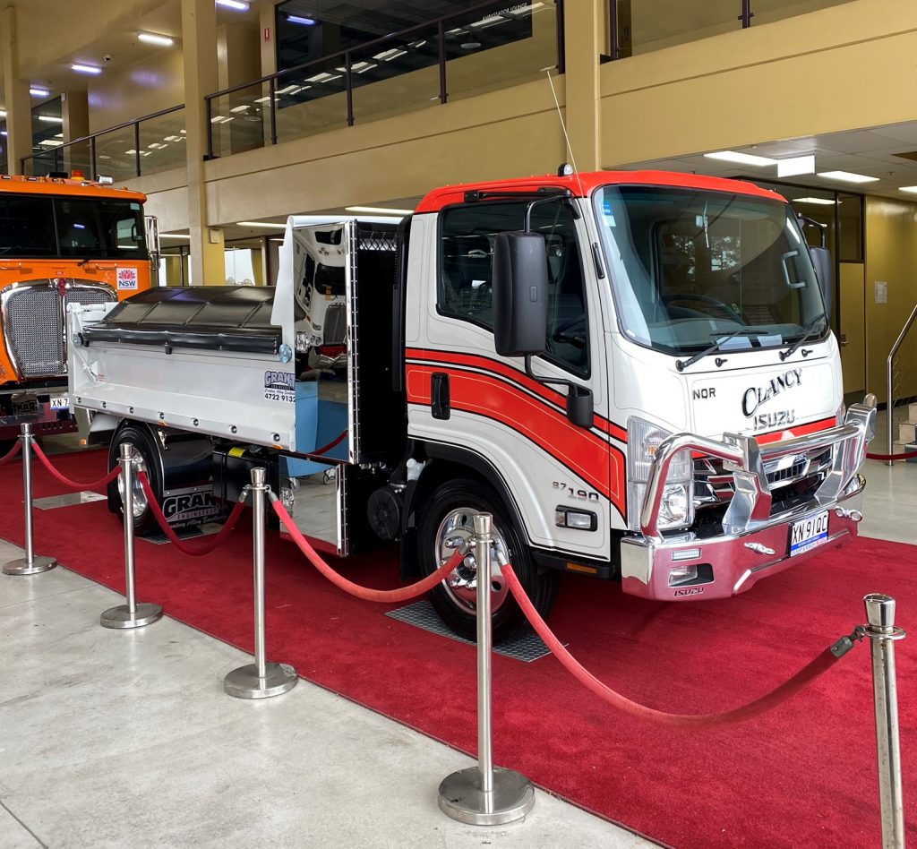 Pictured above is the winning entry, Jamie’s beloved NQR 87-190 from Isuzu’s N Series, known as ‘Clancy’. This striking unit has been given the red-carpet treatment with custom decals, livery and rims as well as top-of-the-range Grant Engineered tipper body and boxes. Jamie’s NQR 87-190 has been put to work across a range of services including site cuts and levelling, driveway repairs and resurfacing, drainage, retaining walls footings and post holes. Clancy certainly turned some heads and got tongues wagging on social media, with Isuzu Australia’s Facebook page running hot during the voting period.Up in lights