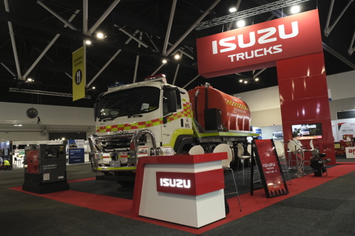 Demonstrating the versatility of its product range for support services, Isuzu showcased an FYX 350-350 Auto 10x4 service truck engineered for the New South Wales Rural Fire Service.