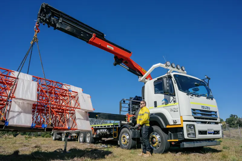 “We’ve got a hooter of a crane on this truck, it turns heads and makes it unique,” says Chris Ratcliff from Australian Radio Towers (ART).