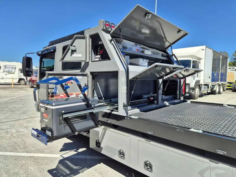 “The truck features a multitude of features including custom paint job and unique body with all manner of lockers containing the conveniences of a home away from home,” said Rob.