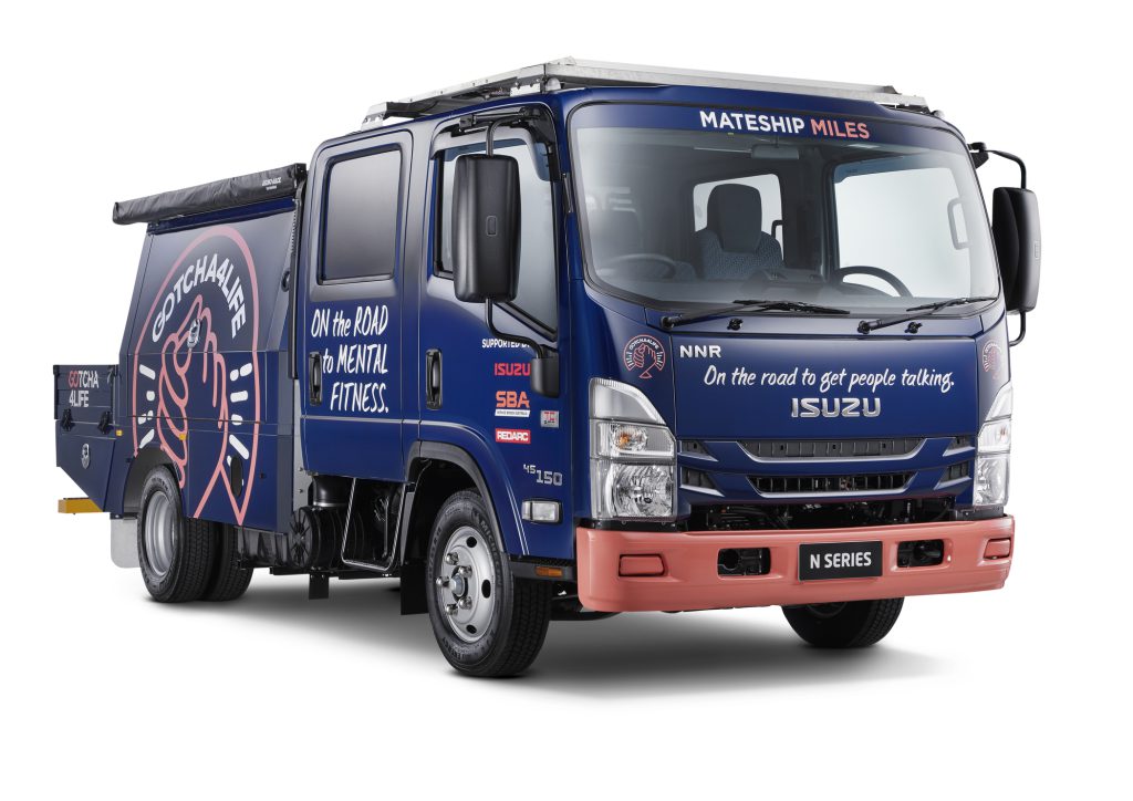 The Gotcha4Life truck is a bit different from what you would expect. This custom-built Isuzu NNR 45-150 Crew has been donated by Isuzu Australia Limited (IAL) and will be raffled off later this year, raising funds for the Gotcha4Life Foundation. Click here to enter the raffle to win it for yourself! By way of some background, back in April Gotcha4Life and Isuzu Trucks embarked on the Mateship Miles roadshow visiting a string of regional centres up the east coast, including Shepparton, Wagga Wagga, Canberra, Nowra, and Woolongong.