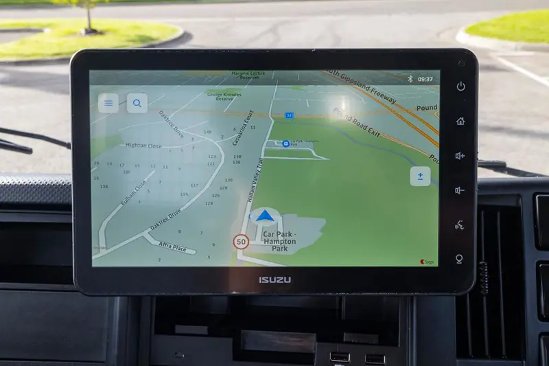Then there’s the new A/V screen called the MyIsuzu Co-Pilot which is an integrated system that features tailored truck-specific navigation with a user-friendly interface. In addition to truck-specific routing (which accounts for the dimensions of the truck being driven), the system will provide the user with over-the-air ‘smart’ capabilities such as live traffic information and live map updates (provided the unit is connected to WiFi or a phone hotspot). It also comes with speed camera alerts, maximum speed, hazmat specifications, and more.
