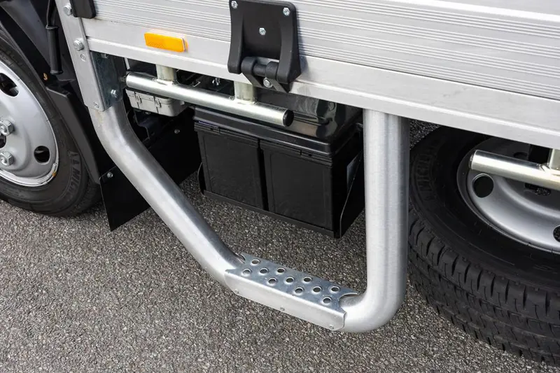 The Traypack’s tray is a 3.4 metre by 2.1 metre heavy-duty drop-side tray with built-in features like sturdy internal and external tie-down points, a tough headboard protecting the cab and steps to the front of the tray on either side.