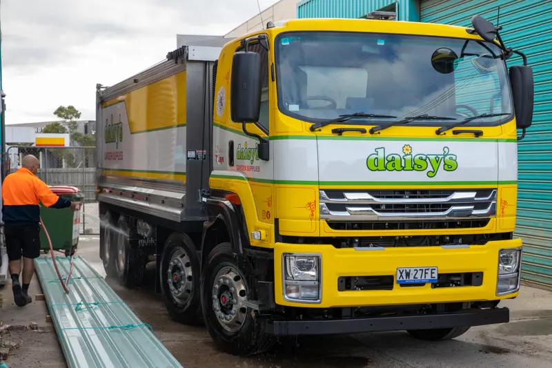 Daisy’s models range from light-duty Isuzu Tippers through to the twin-steer heavy-duty FYJ 300-350, with each truck averaging around 50,000 kilometres a year.